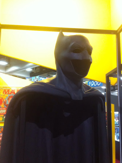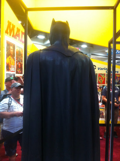 Batman v Superman 24/07/2014 07:52 Em comemoração aos 75 anos do personagem a DC colocou em exposição na Comic-con o capuz e a capa que será usada por Ben Affleck no filme Batman v Superman Dawn of Justice.